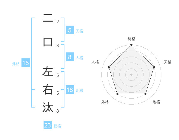 二口 左右汰さんの総格は23画の5点!