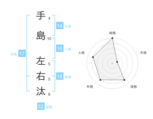 手島 左右汰さんを姓名の画数から五運を鑑定