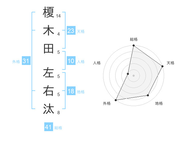 榎木田 左右汰さんの総格は41画の5点