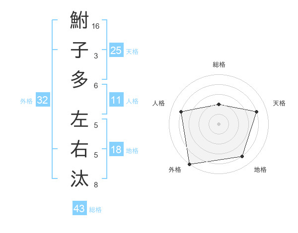 鮒子多 左右汰さんの外格は32画の5点!
