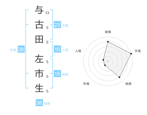 与古田 左市生さんを姓名の画数から五運を鑑定