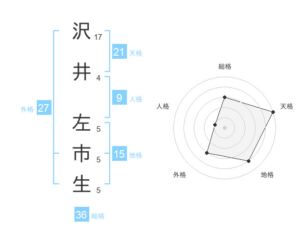 沢井 左市生さんを姓名の画数から五運を鑑定