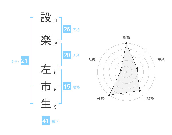 設楽 左市生さんを姓名の画数から五運を鑑定
