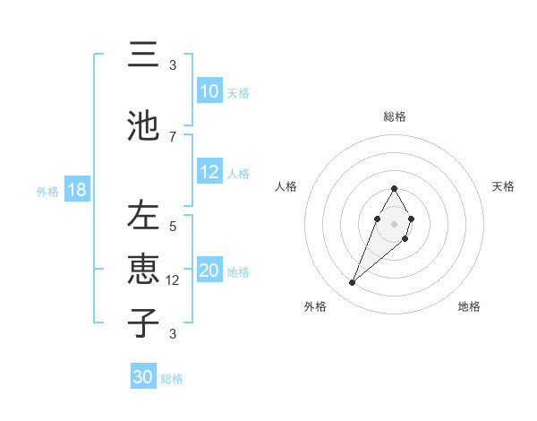 三池 左恵子さんの総格は30画の2点!