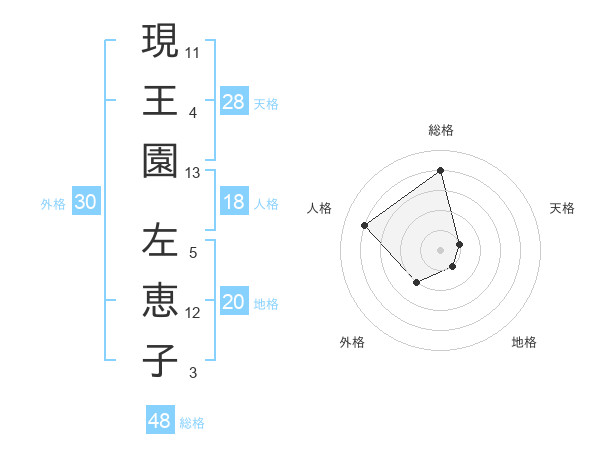 現王園 左恵子さんを姓名の画数から五運を鑑定