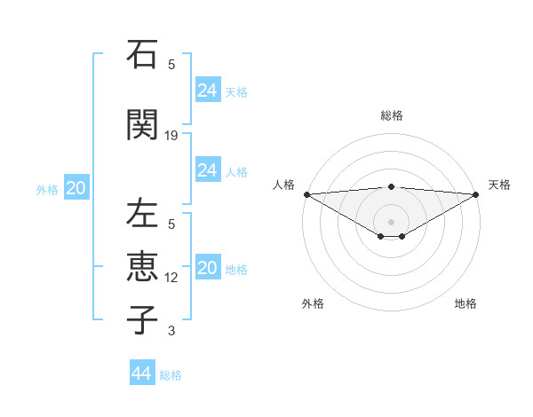 石関 左恵子さんを姓名の画数から五運を鑑定