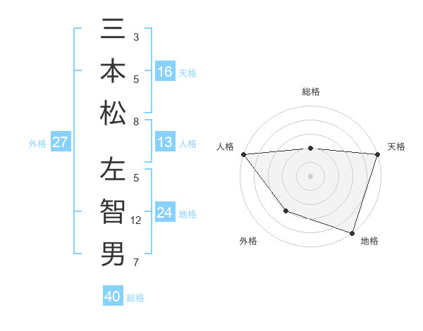 三本松 左智男さんを姓名の画数から五運を鑑定