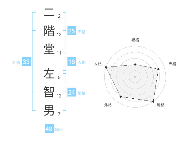 二階堂 左智男さんの天格は25画の4点!