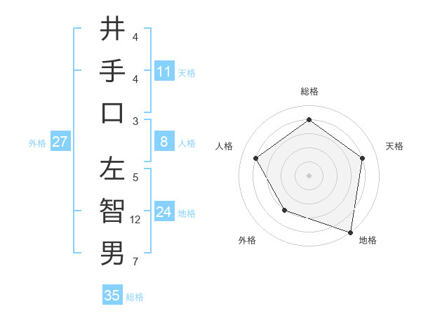 井手口 左智男さんの総格は35画の4点!