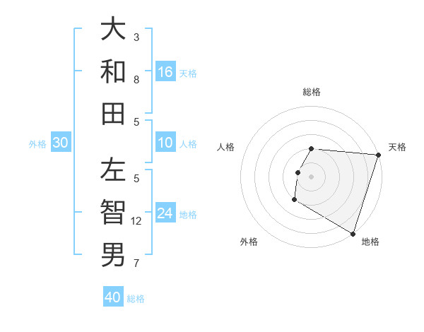 大和田 左智男さんを姓名の画数から五運を鑑定