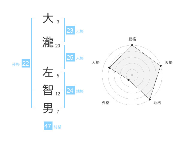 大瀧 左智男さんを姓名の画数から五運を鑑定