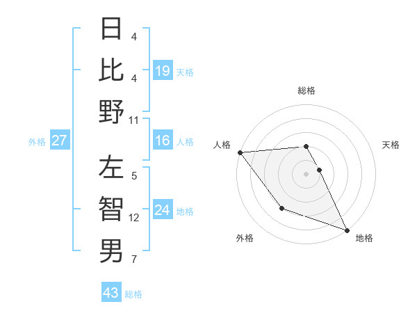 日比野 左智男さんを姓名の画数から五運を鑑定