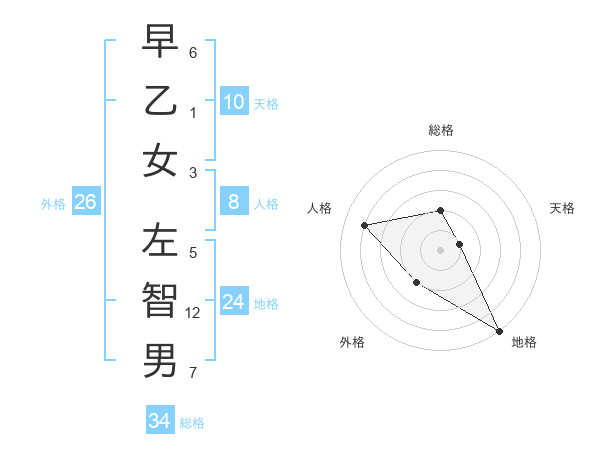 早乙女 左智男さんを姓名の画数から五運を鑑定