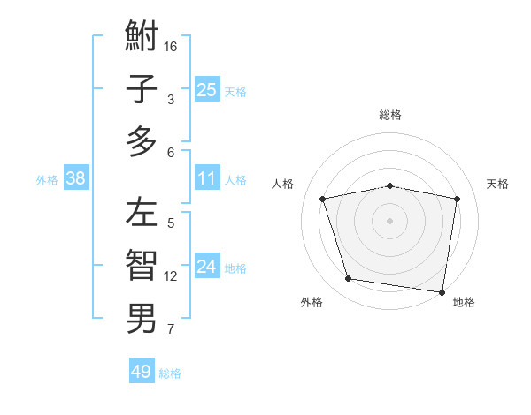鮒子多 左智男さんの外格は38画の4点!