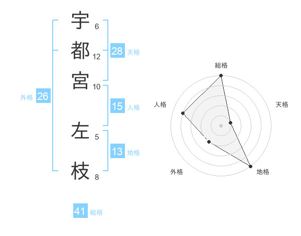 宇都宮 左枝さんを姓名の画数から五運を鑑定