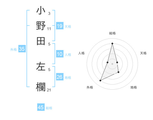小野田 左欄さんを姓名の画数から五運を鑑定