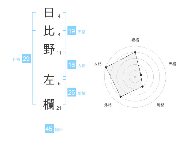 日比野 左欄さんの総格は45画の4点!