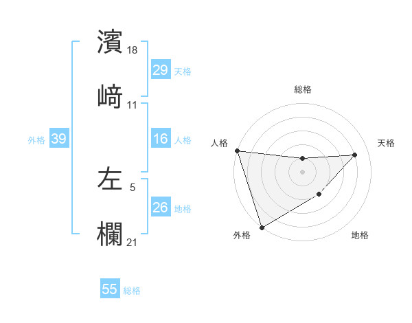 濱﨑 左欄さんを姓名の画数から五運を鑑定