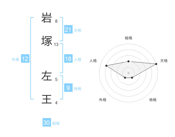 岩塚 左王さんの総格は30画の2点!