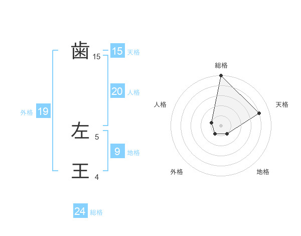 歯 左王さんの総格は24画の5点!