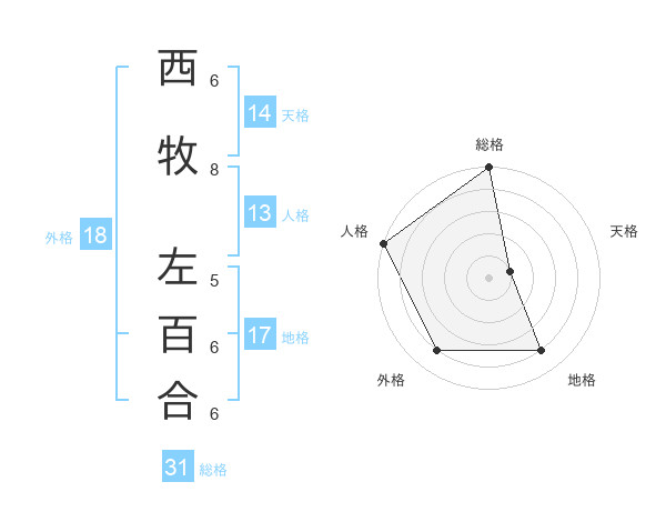 西牧 左百合さんを姓名の画数から五運を鑑定
