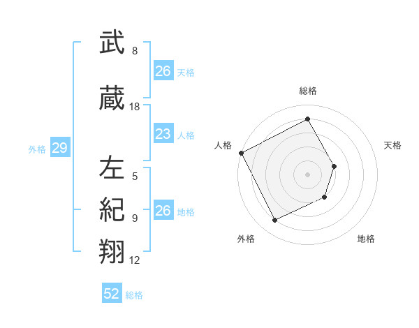 武蔵 左紀翔さんを姓名の画数から五運を鑑定