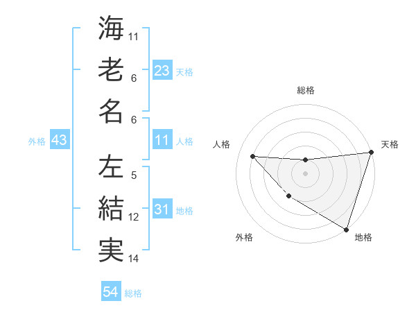 海老名 左結実さんの天格は23画の5点!