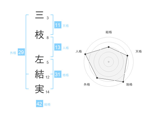 三枝 左結実さんを姓名の画数から五運を鑑定