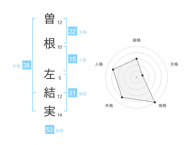 曽根 左結実さんを姓名の画数から五運を鑑定
