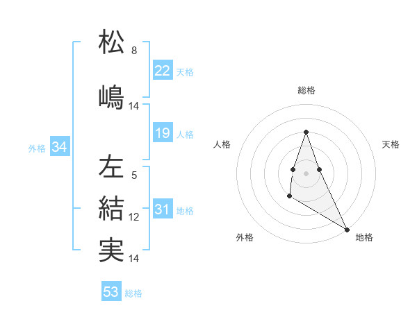 松嶋 左結実さんを姓名の画数から五運を鑑定
