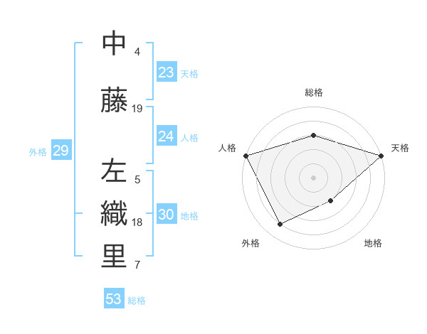 中藤 左織里さんを姓名の画数から五運を鑑定