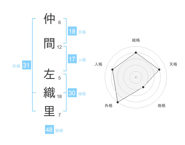 仲間 左織里さんを姓名の画数から五運を鑑定