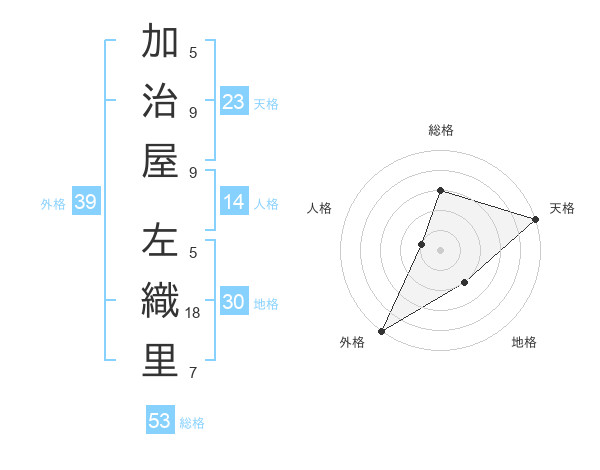 加治屋 左織里さんを姓名の画数から五運を鑑定