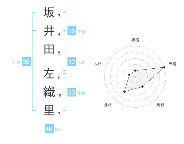 坂井田 左織里さんを姓名の画数から五運を鑑定