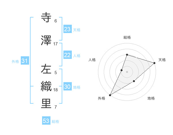 寺澤 左織里さんを姓名の画数から五運を鑑定