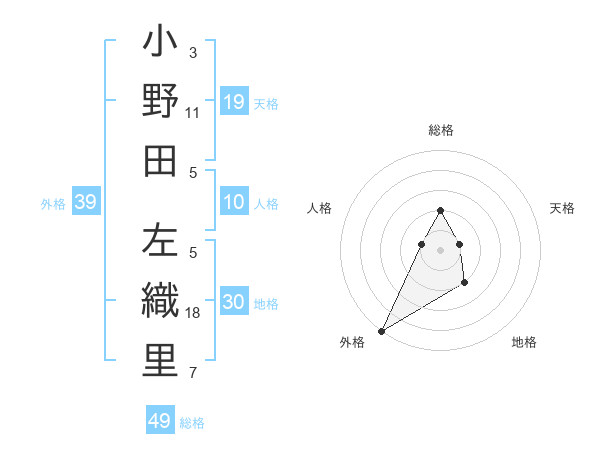 小野田 左織里さんの外格は39画の5点