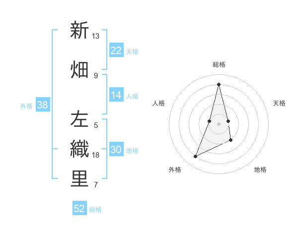 新畑 左織里さんの外格は38画の4点!