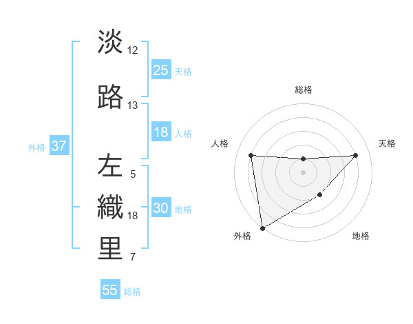 淡路 左織里さんの総格は55画の1点!