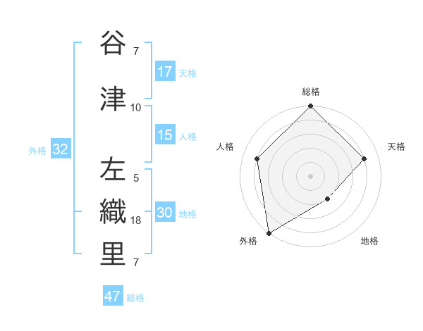 谷津 左織里さんを姓名の画数から五運を鑑定