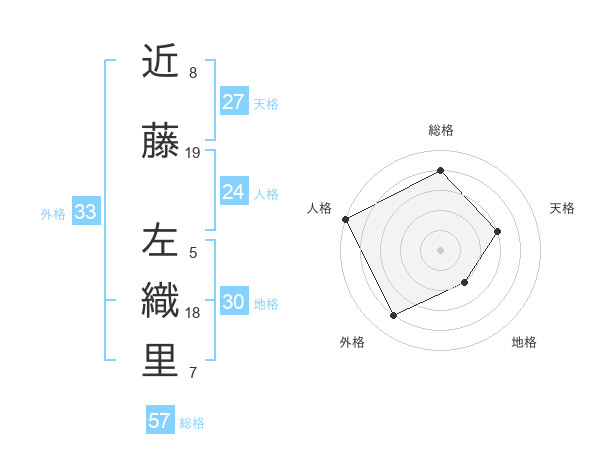 近藤 左織里さんの総格は57画の4点