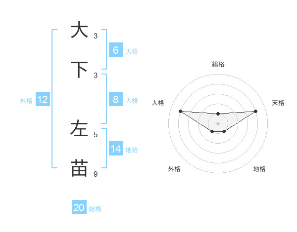 本サイトの鑑定結果の正当性は保証しません。鑑定結果は参考程度にお読みください。実際の名づけにご利用される場合は、姓名判断についてご自身でよくお調べください。