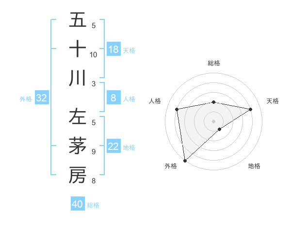 五十川 左茅房さんを姓名の画数から五運を鑑定