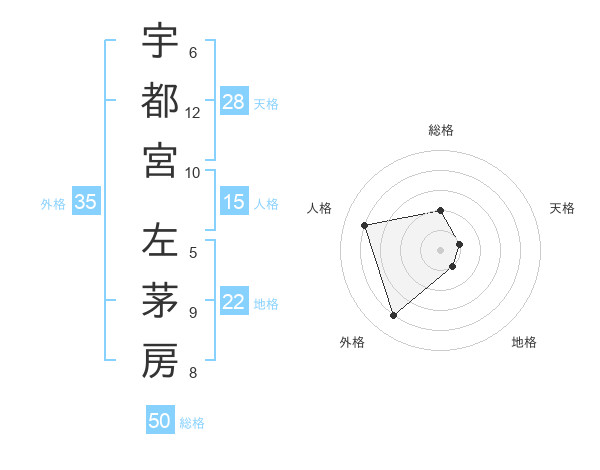 宇都宮 左茅房さんを姓名の画数から五運を鑑定