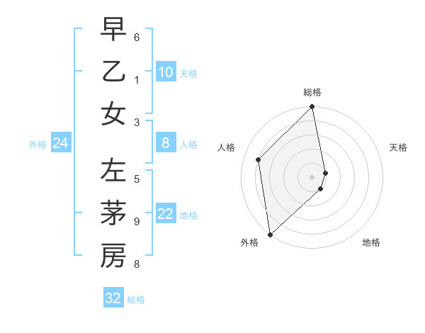 早乙女 左茅房さんを姓名の画数から五運を鑑定
