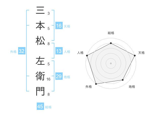 三本松 左衛門さんを姓名の画数から五運を鑑定