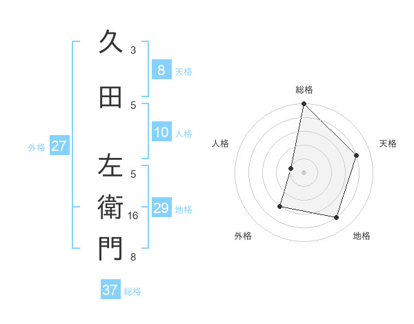 久田 左衛門さんの総格は37画の5点!
