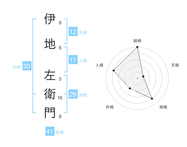 伊地 左衛門さんを姓名の画数から五運を鑑定