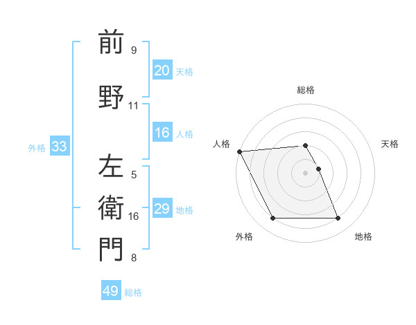 前野 左衛門さんの天格は20画の1点!