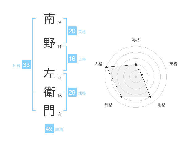 南野 左衛門さんを姓名の画数から五運を鑑定