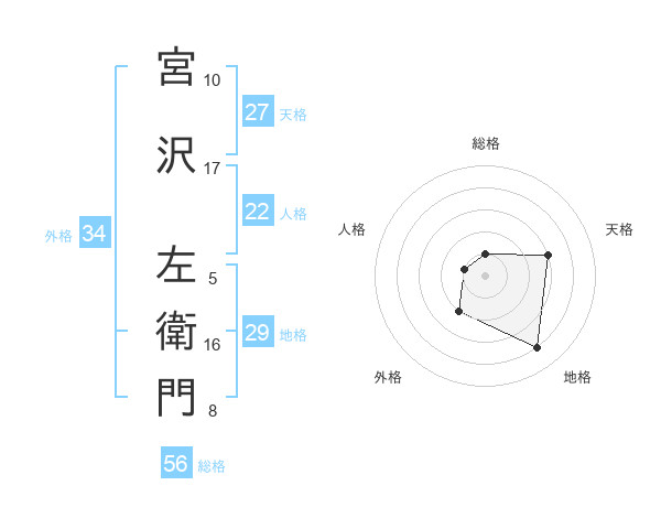 宮沢 左衛門さんを姓名の画数から五運を鑑定